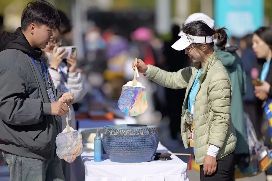 在传承模式上,推出“非遗+体验”“非遗+展会”“非遗+文旅”等多元路径:上合峰会期间,曾氏津派盘扣的“绿蜻蜓”胸针、郑氏漆器的互动漆扇、老津卫花茶的“津派飘雪”三款非遗产品惊艳亮相,其中漆扇互动体验超4000人次,让中外嘉宾沉浸式感受津派非遗的魅力;在天津马拉松半程终点,非遗市集引来众多参赛者、观众打卡参与,成为赛事一大亮点;在海河旧书市集等活动中融入非遗元素,通过各种活动的植入,将河东区非遗项目搬到岸畔街区,让市民游客在逛街休闲中邂逅非遗、了解非遗、体验非遗,使非遗从“博物馆里的展品”变为“生活中的好物”。