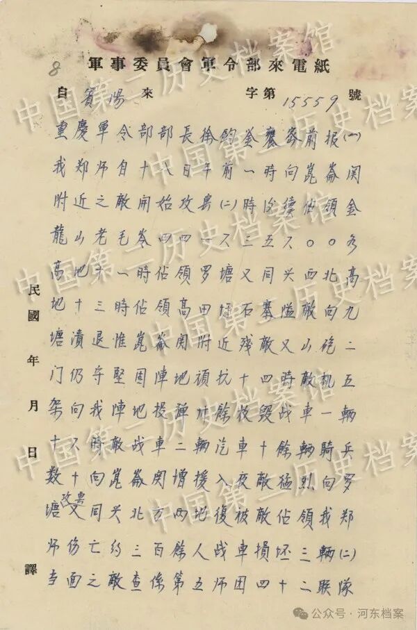 三、1939年12月19日,第三十八集团军总司令徐庭瑶等报告攻击昆仑关作战情形致军令部部长徐永昌电